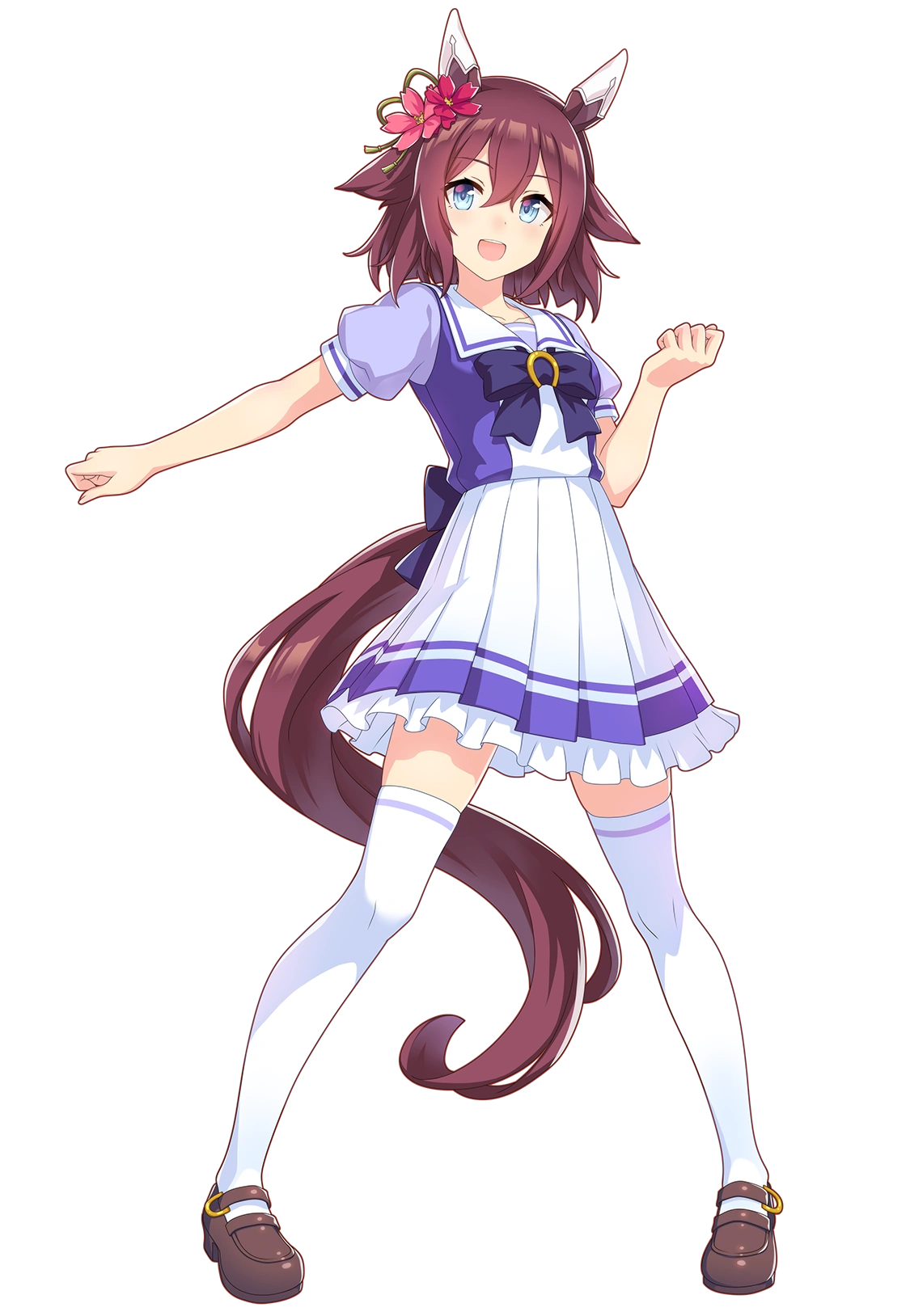 A pure-hearted, honest Umamusume. She admires Maruzensky, and aims to be her equal in every way. She makes a habit out of filling her "Chiyonotes" with proverbs relevant to her daily experiences—though few but her are able to parse them.